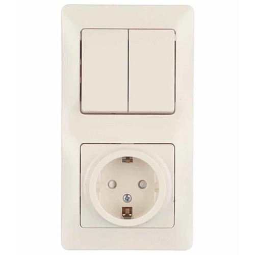 Блок комбинированный Шнайдер Электрик Глосса скрытого монтажа, розетка на 16 А с заземляющим контактом и 2-клавишный выключатель на 10 А, бежевый цвет