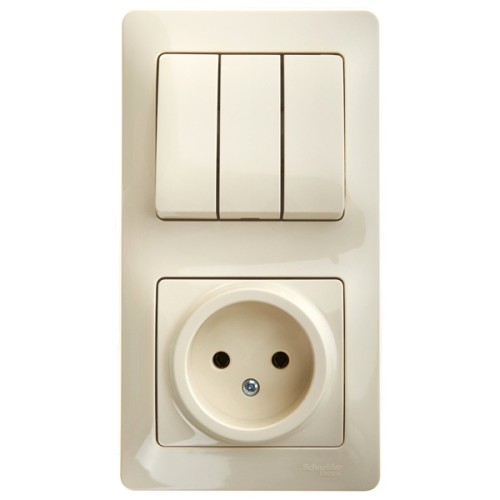 Блок комбинированный Шнайдер Электрик Глосса скрытого монтажа, розетка на 16 А и 3-клавишный выключатель на 10 А, бежевый цвет