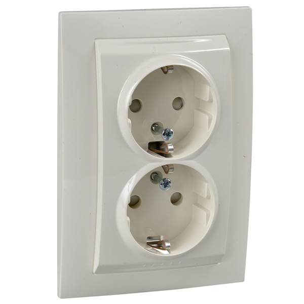 Розетка двойная без заземления со шторками (винтовой зажим) SE Unica, бежевый