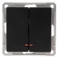 Двухклавишный выключатель с подсветкой 10А механизм SE W59, черный бархат