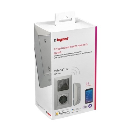 Стартовый пакет (шлюз+розетка+выкл. Я дома/Я вне дома) Legrand Valena Life NETATMO алюминий