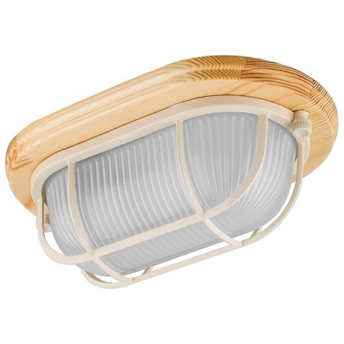 Накладной, влагозащищенный светильник серии "Кантри" Ферон, для бани и сауны, с защитной решеткой, максимальная мощность лампы 60 Ватт, цвет клён,