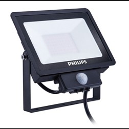 Пылевлагозащищенный LED прожектор Филлипс с датчиком движения, мощностью 20 Ватт, черного цвета и нейтрального света.